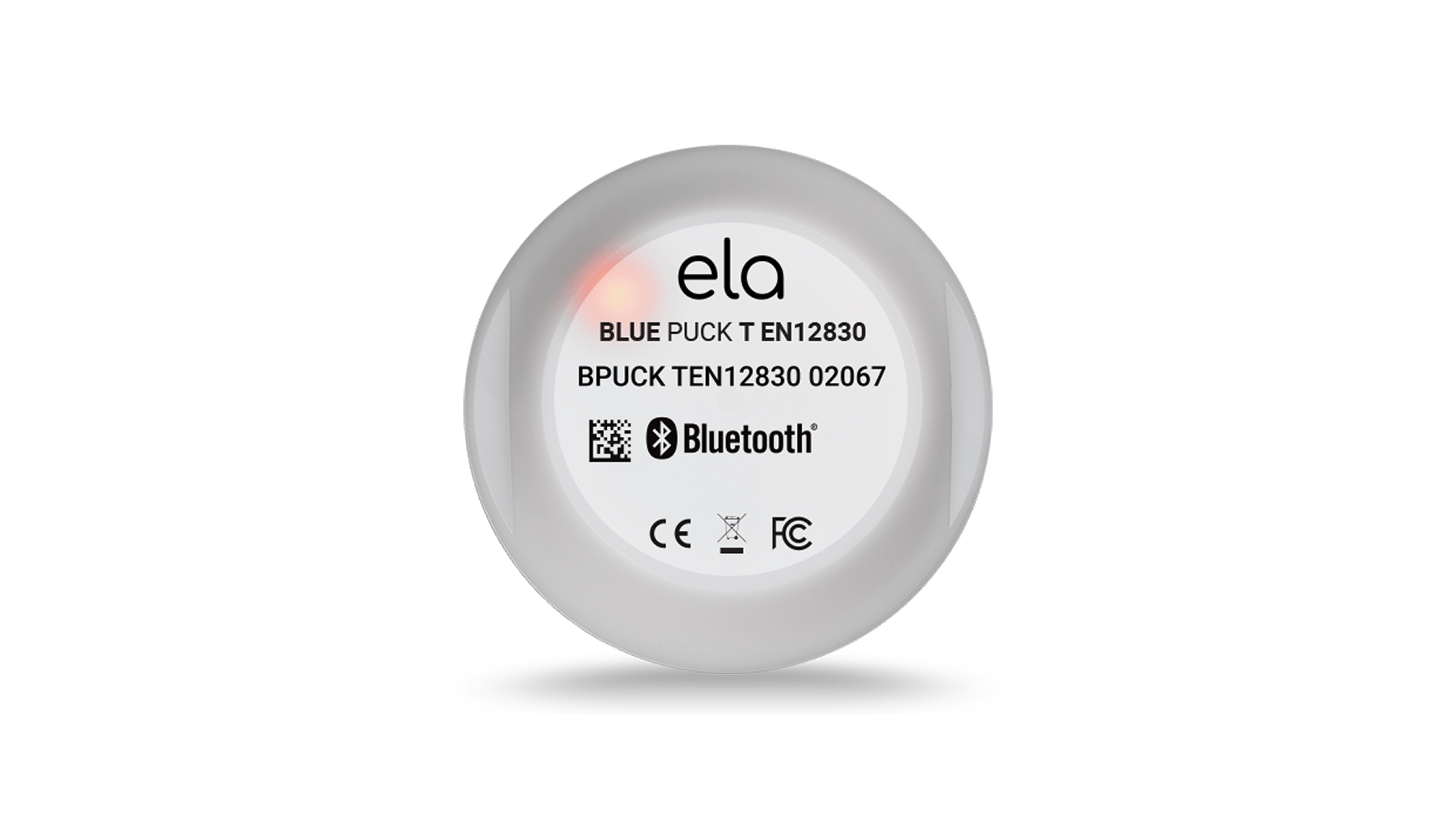 La solución de Sensor inalámbrico de temperatura utiliza el ELA Innovation Blue PUCK T EN12830, un sensor Bluetooth compacto, impermeable y robusto para cadena de frío y entornos industriales.